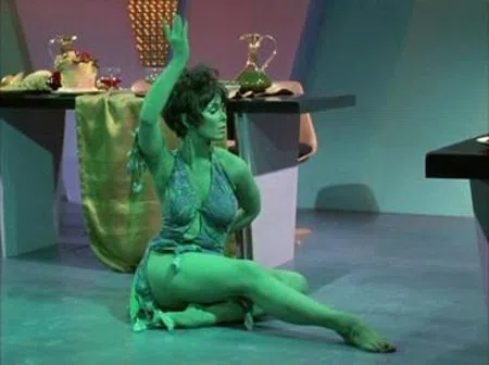 Yvonne Joyce Craig (May 16, 1937 – August 17, 2015) was a crush of mine during my childhood. Playing Barbara Gordon/Batgirl in the 60’s television incarnation of BATMAN was what originally got my attention. She appeared in so many shows of that era (including roles in two Elvis Presley movies, IT HAPPENED AT THE WORLD’S FAIR and KISSIN’ COUSINS) that it was hard not to notice her and her staggering beauty. But what really put the hook in my throat regarding Ms Craig was her role in the STAR TREK episode, “Whom Gods Destroy” as the Orion slave girl, Marta. My puberty began right then and there.